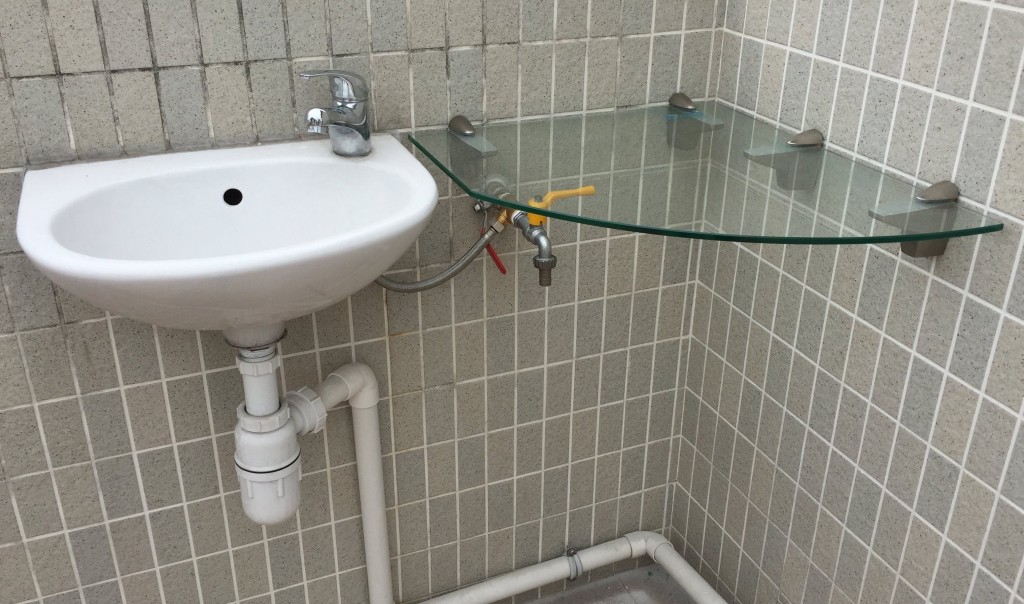 先前在天台裝了一個洗手盆, 旁邊的空間一直想放一張枱或者櫃, 考慮到美觀及 fit 位兩方面, 最後決定簡單裝上一塊玻璃當做桌子用。